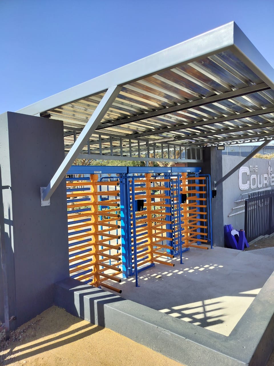 What do you think of these beautiful TITAN 4 single turnstiles installed at the Courier Guy? We did the frames in blue and the rotors in orange. This is one of the advantages when choosing Turnstar. We have our own in-house powder coating plant which makes special colours a cost-effective breeze.